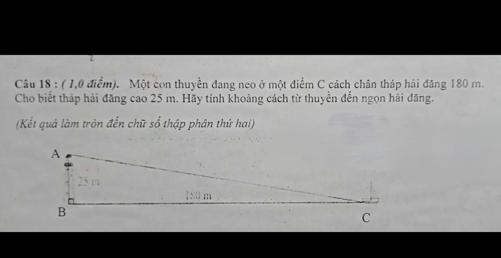 Khoảng cách từ thuyền đến ngọn hải đăng là đoạn thẳng AC