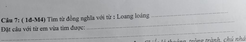 Từ đồng nghĩa với từ "loang loáng" là : "nhoang nhoáng"