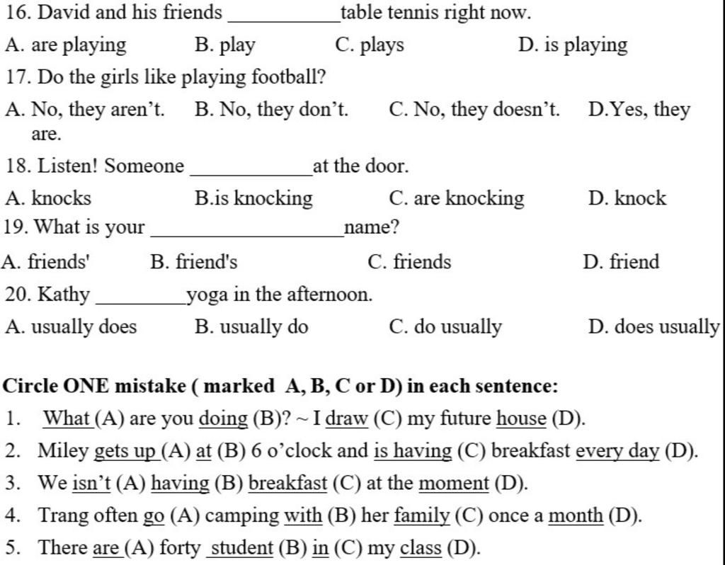 Loại A,D vì câu hỏi đang là trợ động từ → k dùng to be