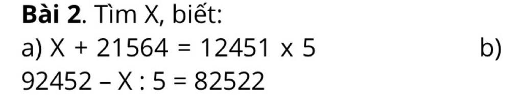 `a,` `x` `+ 21564` `= 12451` `× 5`