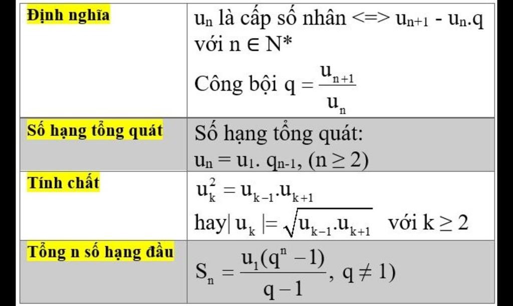 Cấp số nhân là 1 dãy số thoải mãn điều kiện số thứ 2 của dãy số đó là tích của số đứng trước với 1 số ko đổi.