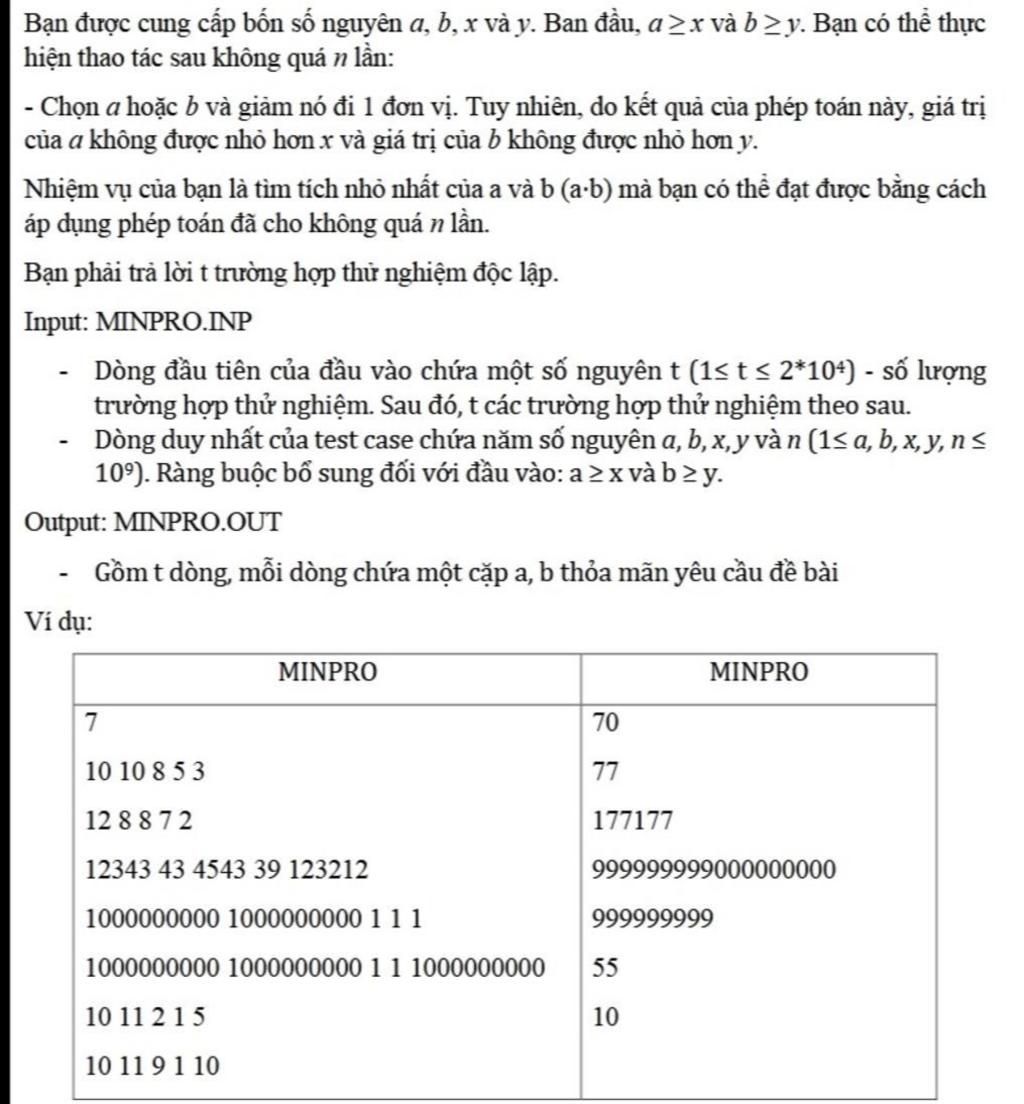 Bạn được cung cấp bốn số nguyên a, b, x và y. Ban đầu, a ≥x và b ≥y. Bạn có thể thực