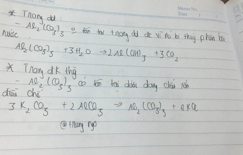 `Al_2(CO_3)_3` có tồn tại: `Nhôm` `Cabonat` Là một chất hiếm, dưới dạng khoáng chất dawsonit