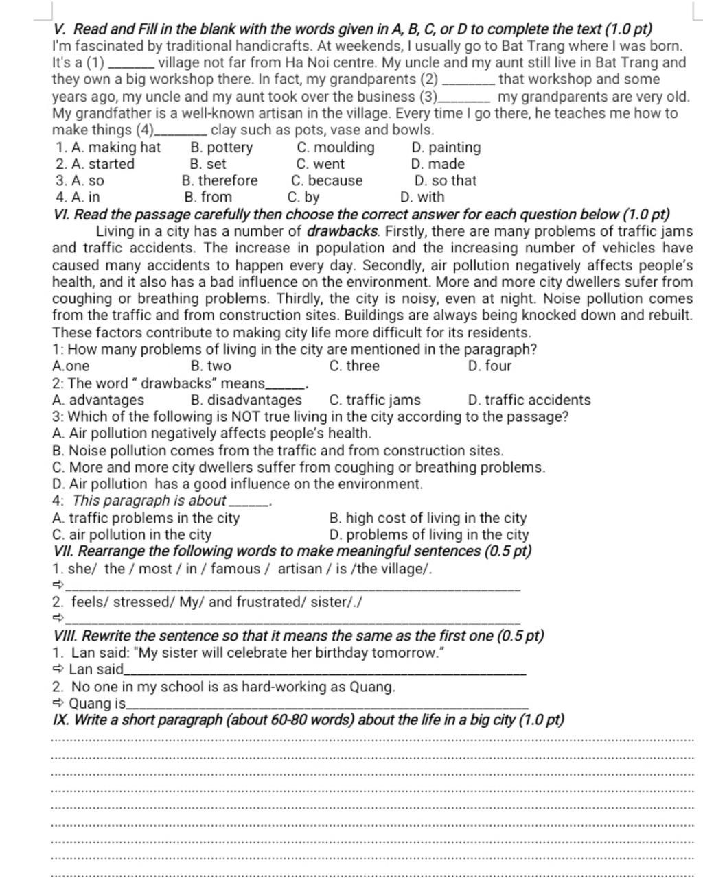 V. Read and Fill in the blank with the words given in A, B, C, or D to complete the text (1.0 pt)