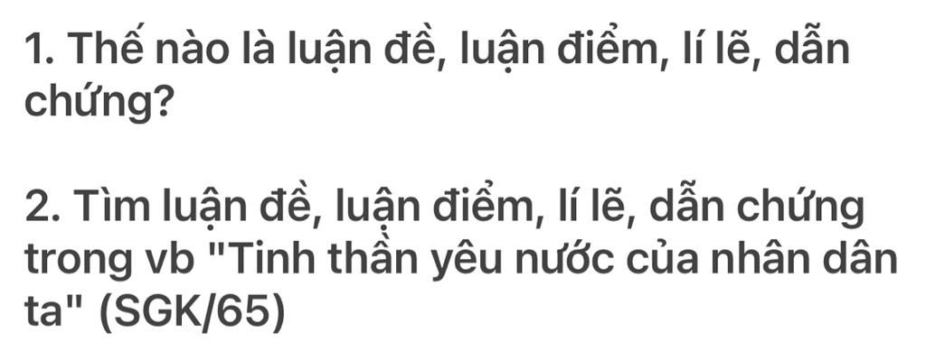 +)Luận điểm: Tình yêu nước của nhân dân ta là một giá trị quan trọng và cần được tôn vinh và bảo vệ.