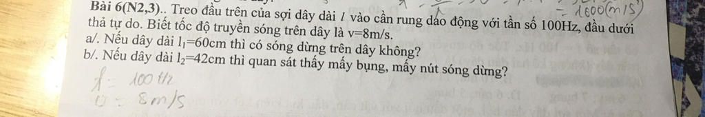 Bài 6(N2,3).. Treo đầu trên của sợi dây dài I vào cần rung dao động với tần số 100Hz, đầu dưới