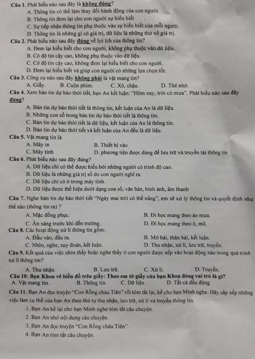 D. Thông tin là những gì có giá trị, dữ liệu là những thứ vô giá trị ...