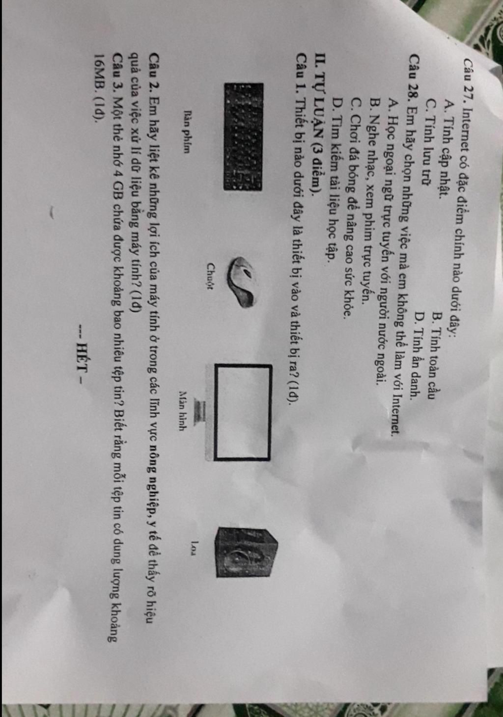 thiết bị vào : bàn phím , chuột , màn hình .