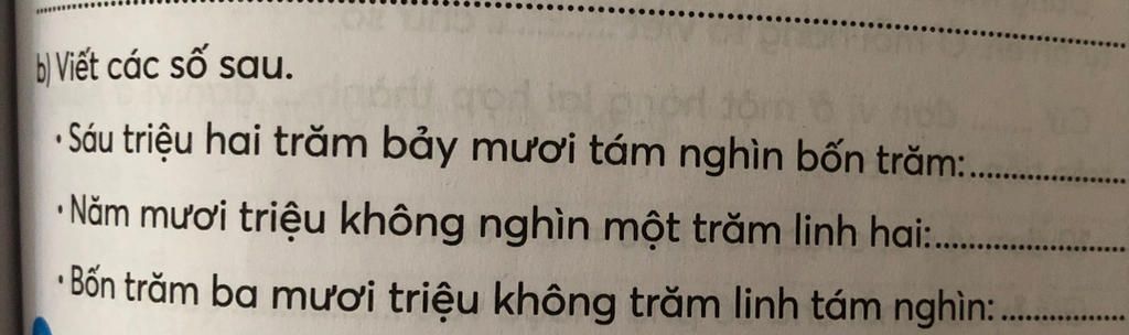 - Sáu triệu hai trăm bảy mươi tám nghìn bốn trăm: