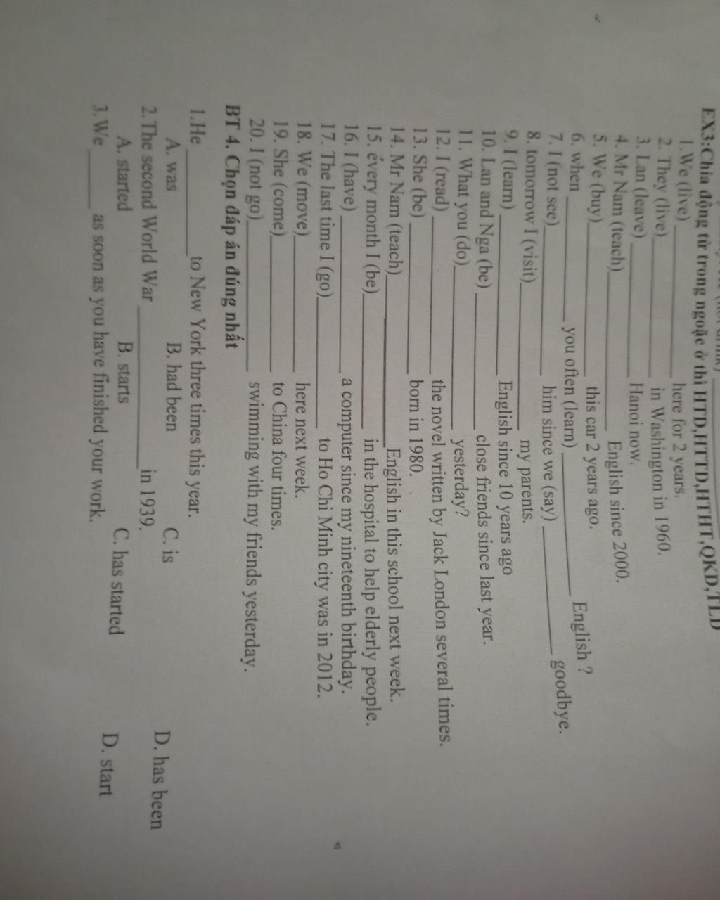DHNB: before, since + mốc thời gian, for + khoảng thời gian, yet, already, just,....