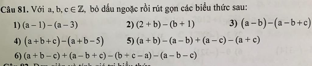 `3)(a-b)-(a-b+c) `