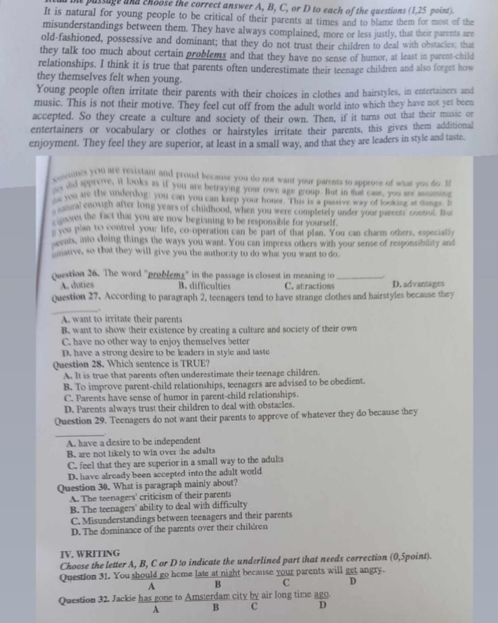 age and choose the correct answer A, B, C, or D to each of the questions (1,25 point).