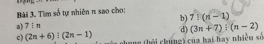 $\Rightarrow$ n-1 $\in$ Ư của 7={$\pm$ 1; $\pm$7}