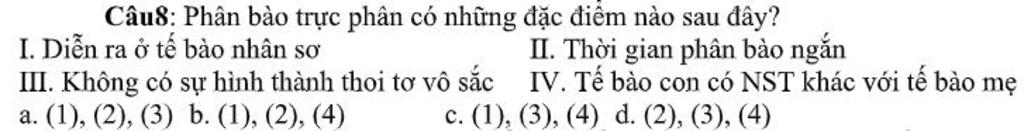 - Phân bào trực phân hay còn gọi là phân bào không tơ, xảy ra ở sinh vật tiền nhân hoặc ở một số mô như phôi nhũ hoặc nội nhũ, nhằm làm tăng nhanh số lượng tế bào trong một thời gian ngắn.
