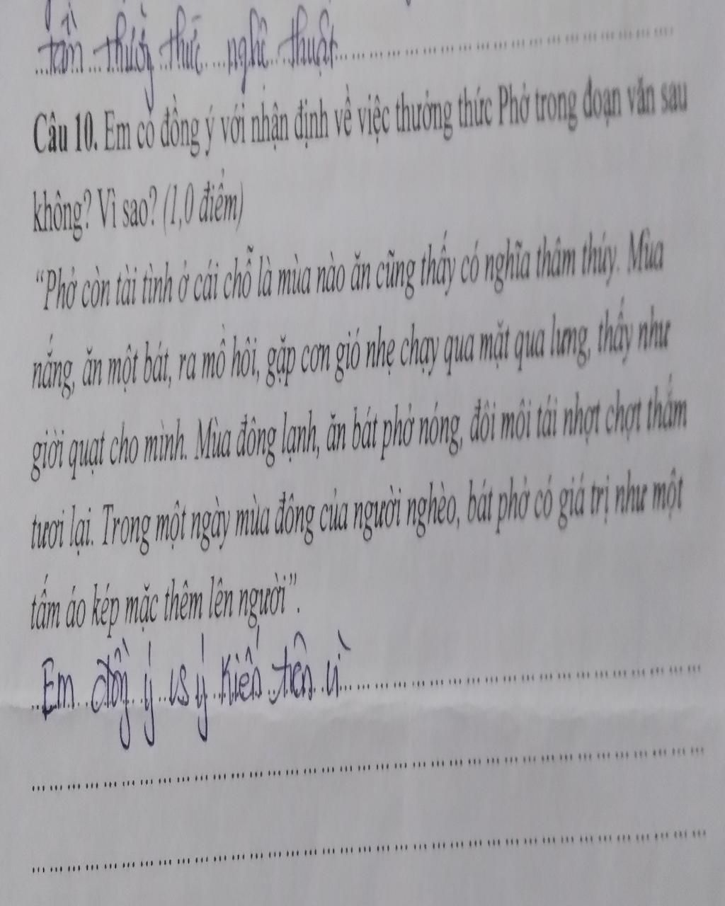 Cần 10. Em có đồng ý với nhận định về việc thưởng thức Phi trong đoạn văn sau