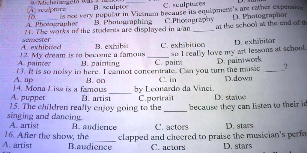 11. The works of the students are displayed in a/an