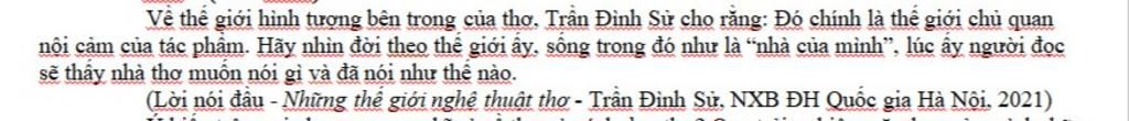 Về thế giới hình tượng bên trong của thơ, Trần Đình Sử cho rằng: Đó chính là thế giới chủ quan