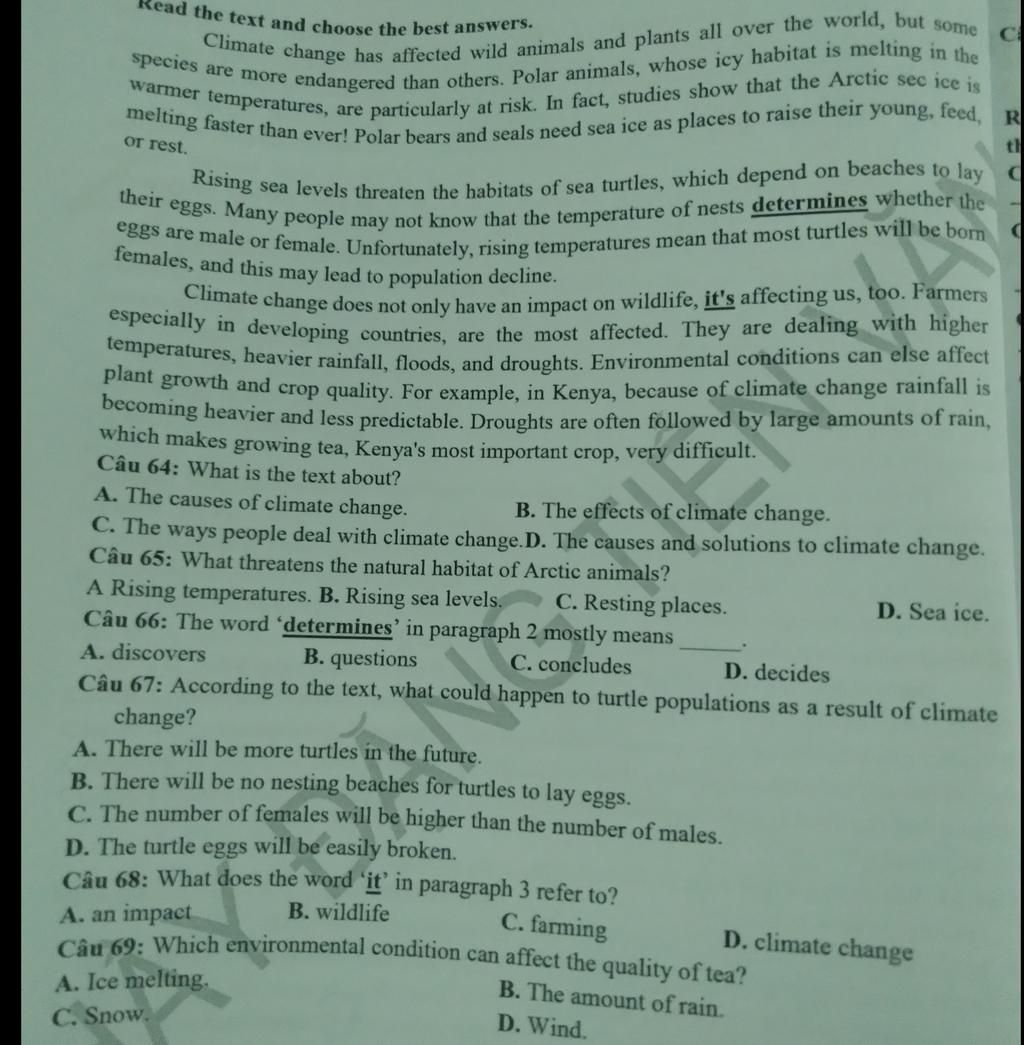 68. D climate change 69. B the amount of rain