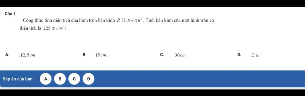 `\text{Công thức tính diện tích hình tròn} : S = \pi R²`