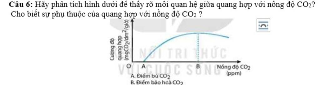 Trong hình vẽ, mối quan hệ giữa quang hợp và nồng độ CO2 có thể được mô tả như sau: