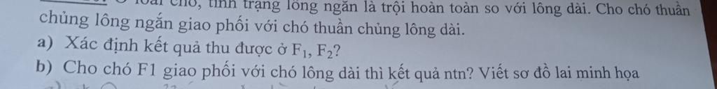 Theo đề, lông ngắn trội hoàn toàn so với lông dài