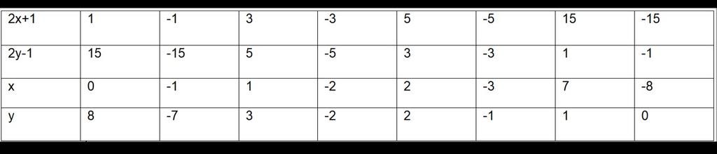 2x - 1 | - 1 | - 15 | 3 | 5 | 1 | 15 | -3 | - 5