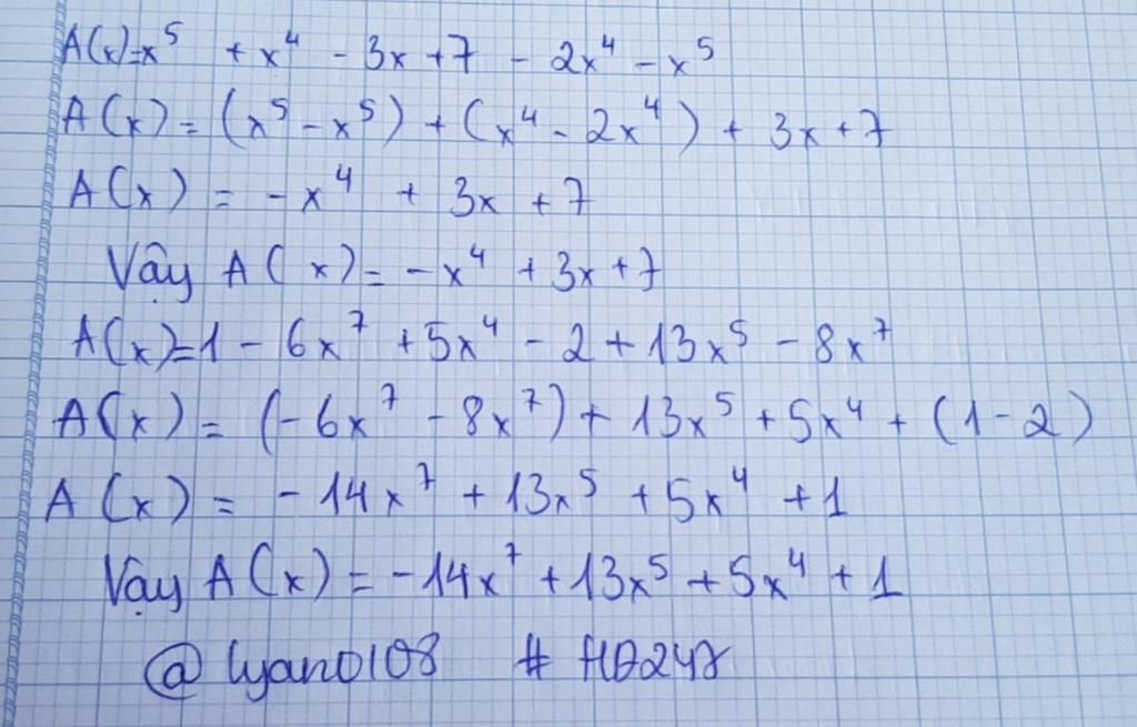 `A(x)=x^5+x^4-3x+7-2x^4-x^5 `