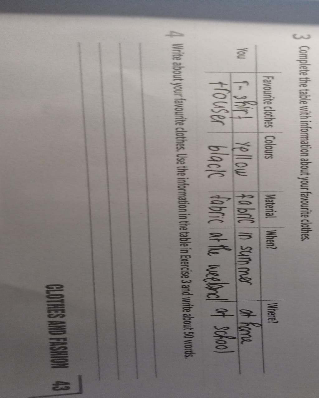 Write about your favourite clothes. Use the information in the table in Exercise ...