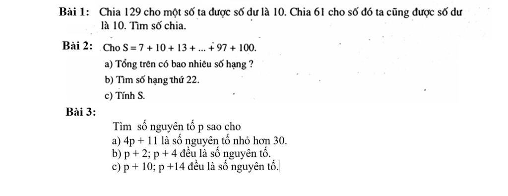 Chia 129 cho một số ta được số dư là 10. Chia 61 cho số đó ta cũng được số dư