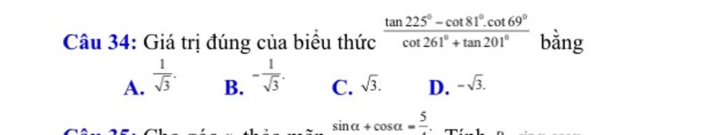 `=(tan(180^o +45^o)-cot(90^o-9^o)*cot(90^o-21^o))/(cot(261^o-360^o)+tan(201^o-360^o))`