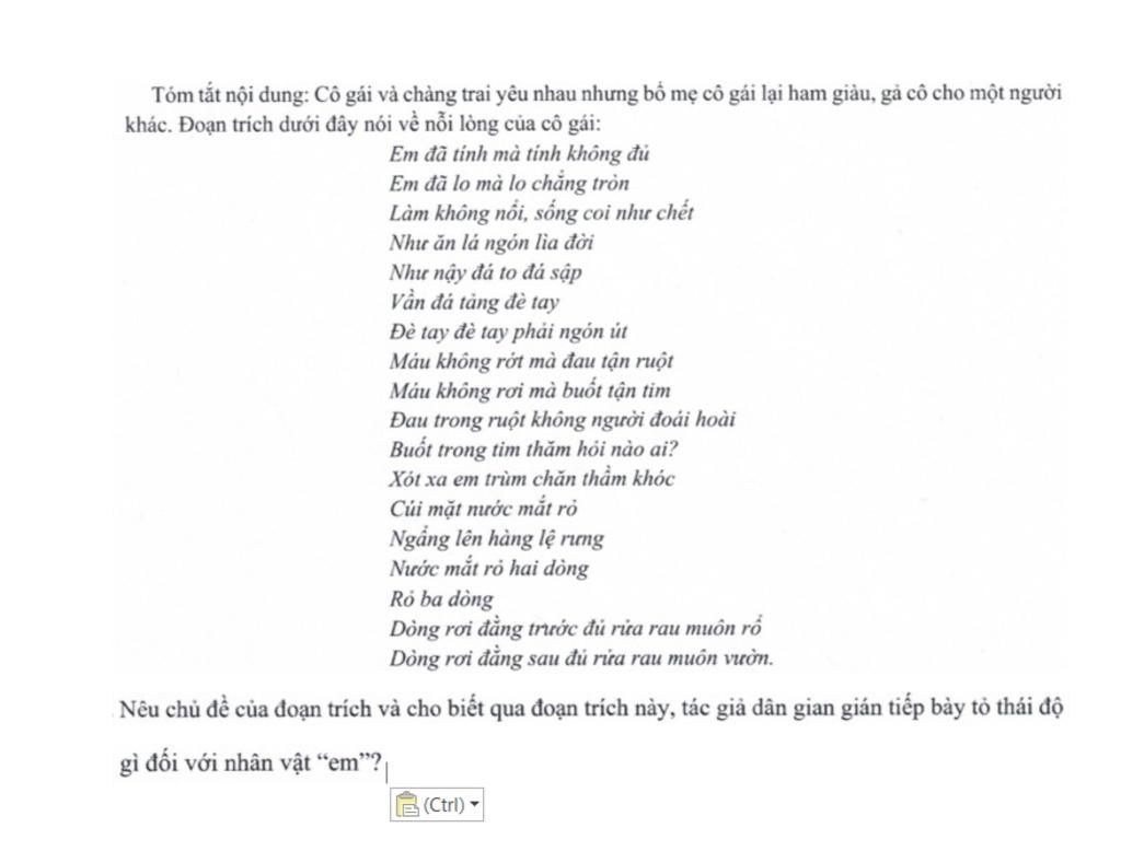 khác. Đoạn trích dưới đây nói về nỗi lòng của cô gái: