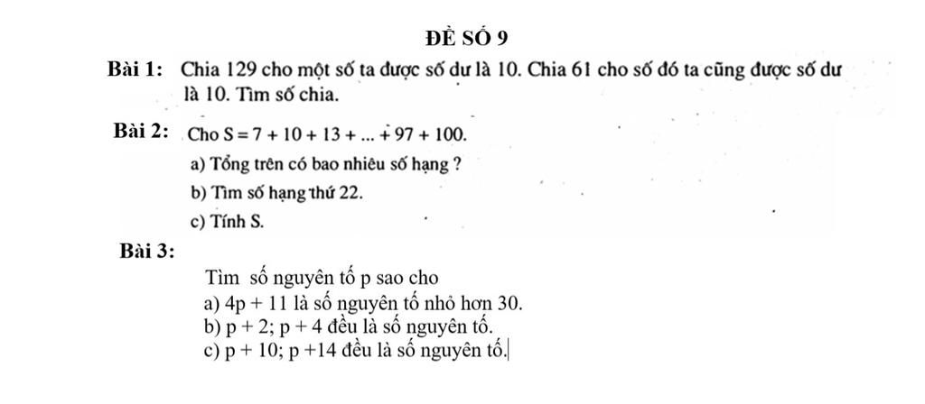 Chia 129 cho một số ta được số dư là 10. Chia 61 cho số đó ta cũng được số dư