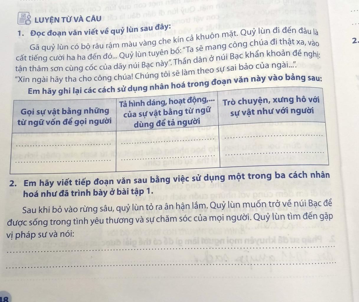 Tả hình dáng, hoạt động,... của sự vật bằng từ ngữ dùng để tả người: bộ râu rậm che kín khuôn mặt, đi, cất tiếng cười,tuyên bố,mang, khẩn khoản đề nghị,sai bảo.