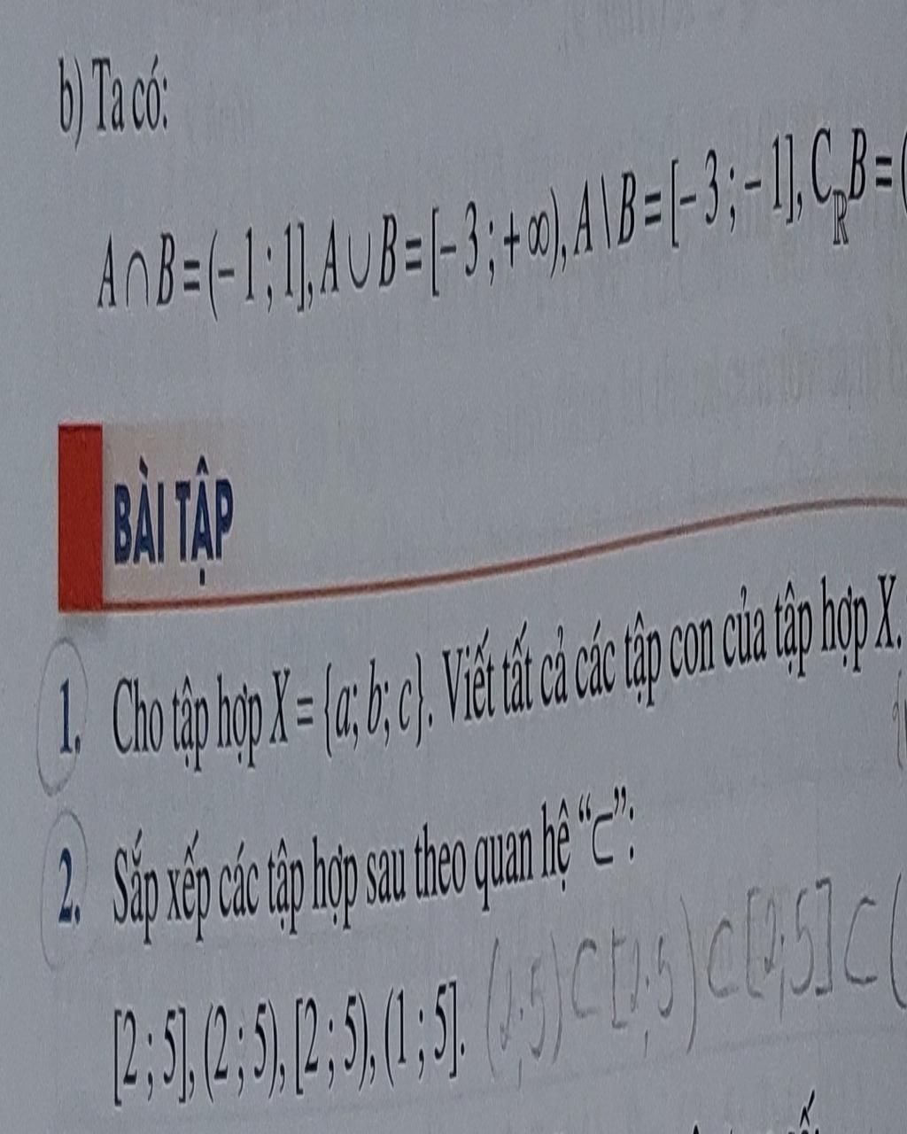 1. Cho tập hợp I=lar bec, Viết tất cả các tập con của tập hợp X.