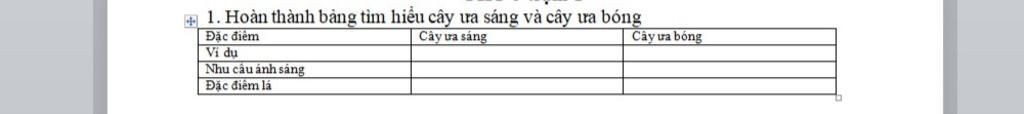 `+` Nhu cầu của những cây ưa bóng là : không cần nhiều ánh sáng nên thường sống ở nơi bóng râm