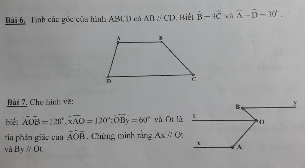 Bài 6. Tính các góc của hình ABCD có AB // CD. Biết B=3C và Â –Ô=30°.