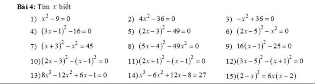 (Tất cả các câu tìm x đều kết luận hết)