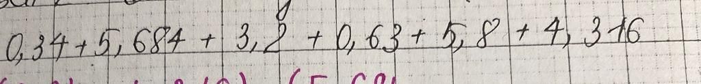 `0,34+5,684+3,2+0,63+5,8+4,316`