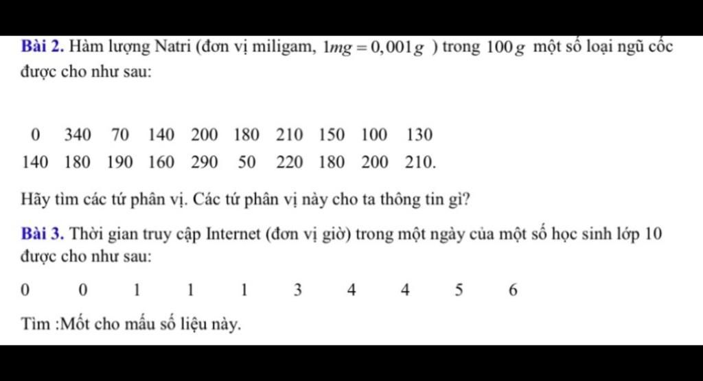 Bài 2. Hàm lượng Natri (đơn vị miligam, 1mg =0,001g ) trong 100g một số loại ngũ cốc
