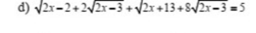 d)\sqrt {2x - 2 + 2\sqrt {2x - 3} } + \sqrt {2x + 13 + 8\sqrt {2x - 3} } = 5\\