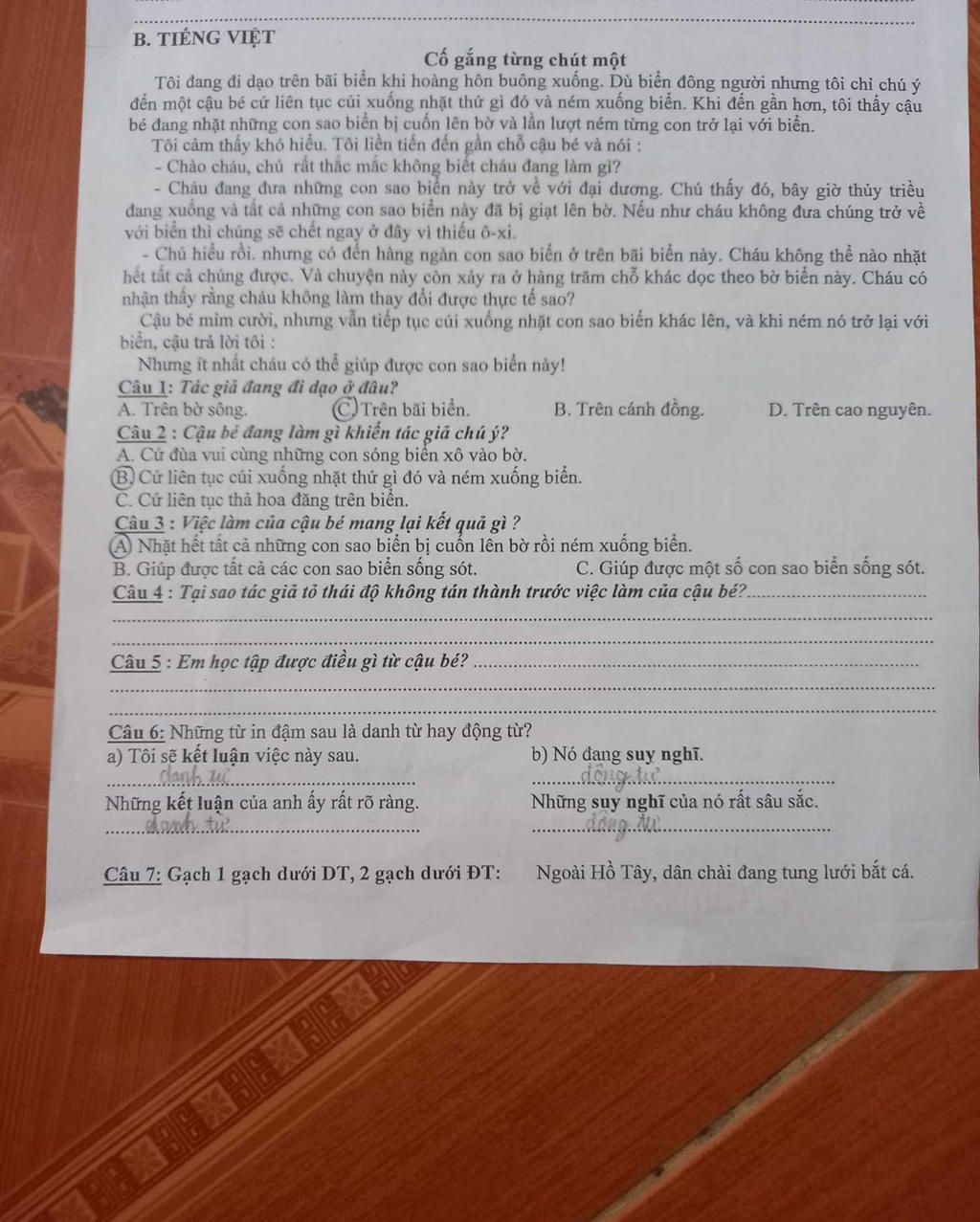 -Em học tập đc tính tốt bụng từ cậu bé(giúp những chú sao biển) và tính kiên trì(cậu đã giúp những chú sao biển hiết khả năng và sức lực của cậu vì cậu kiên trì nên mới như vậy nếu ko cậu đã bỏ)và ý chí lớn(vì có như vậy cậu mới có thể thực hiện đến như vậy ko thì cậu đã chán rồi)