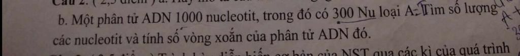 vậy số nu loại G=X= 1000/2 -300 = 200 (nu)