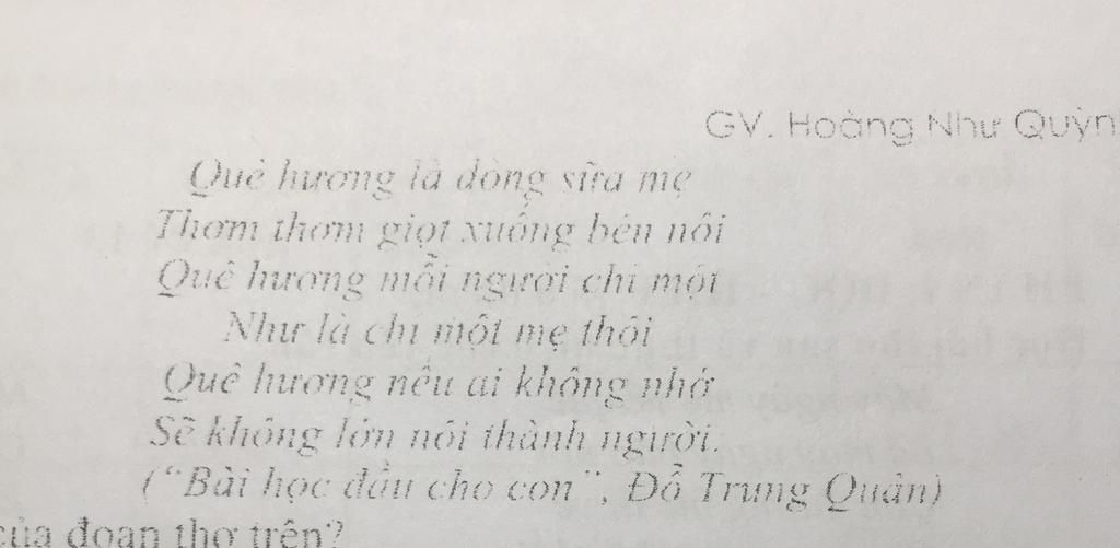 Đoạn thơ nói về vai trò của quê hương đôú với ta, từ khi mới sinh ra đến khi lớn lên.