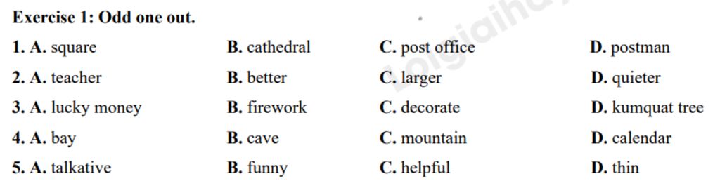 `5.D` chỉ ngoại hình, còn lại chỉ tính cách