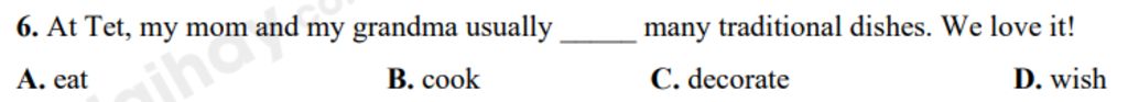 `@ ` Nghĩa`: ` Vào ngày tết, mẹ và bà tôi thường xuyên nấu nhiều món ăn truyền thống. Chúng tôi yêu nó!