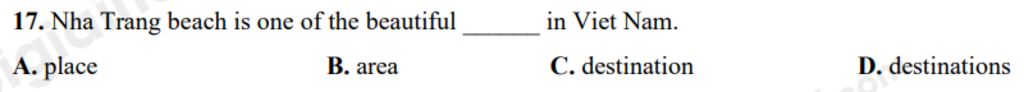 D,destinations(n)những điểm đến