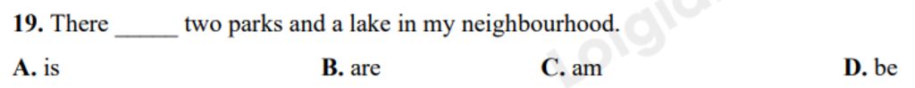 `->` Vì trong câu gồm `2` sự vật được nhắc đến "two parks", "a lake" nên cần dùng Vtobe ở dạng số nhiều là "are"