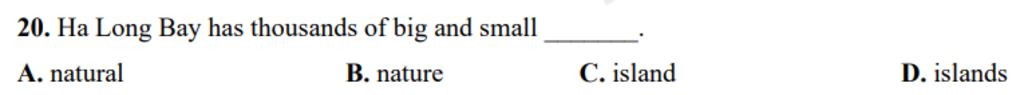`->` Vịnh Hạ Long có hàng ngàn hòn đảo lớn nhỏ