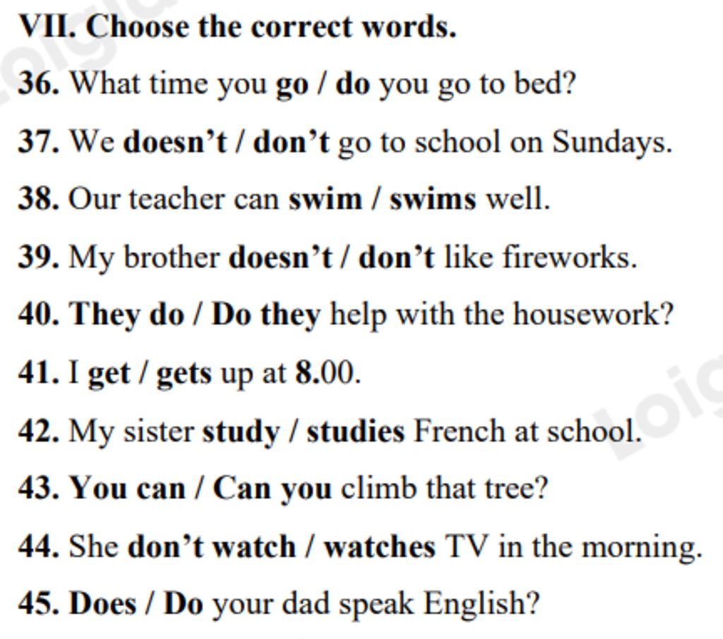 37. don't (dấu hiệu: on Sundays)