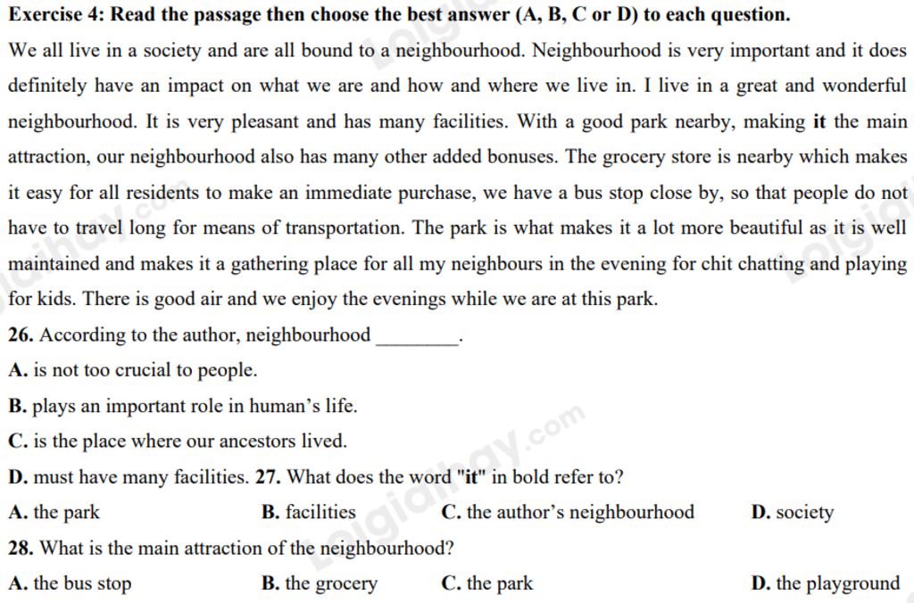 Thông tin: Neighbourhood is very important and it does definitely have an impact on what we are and how and where we live in.